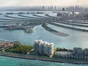 Willkommen in einer der exklusivsten Adressen Dubais: Diese luxuriöse Waterfront-Duplexwohnung in der renommierten ORLA Dorchester Collection bietet nicht nur spektakuläre Ausblicke auf das Meer und Palm Jumeirah, sondern auch einen privaten Pool auf der eigenen Terrasse. Die ca. 525 m² große Residenz verteilt sich über zwei Etagen und umfasst drei großzügige Schlafzimmer, vier elegante Badezimmer, einen offenen Wohn- und Essbereich mit bodentiefen Fenstern sowie ein Dienstzimmer.