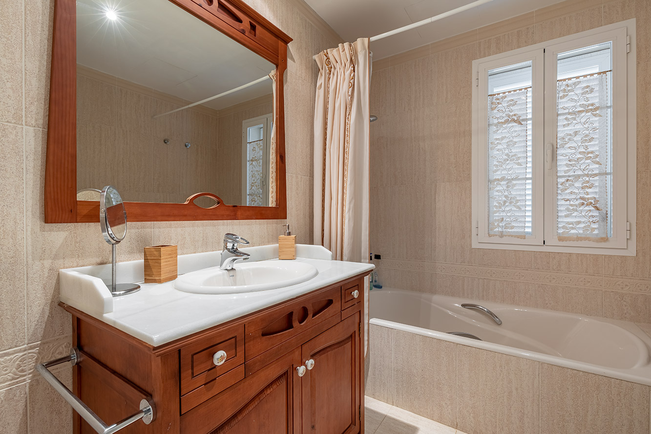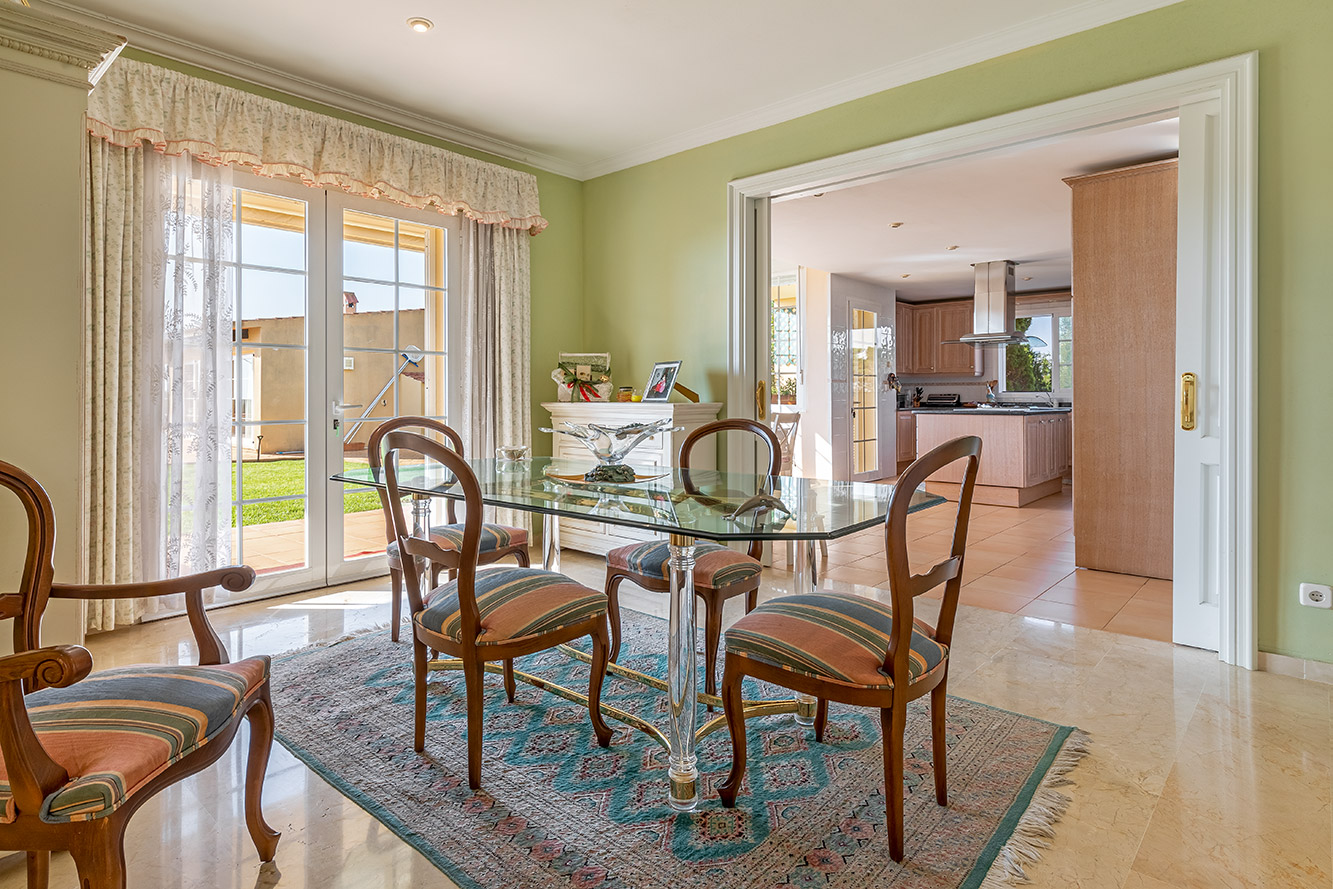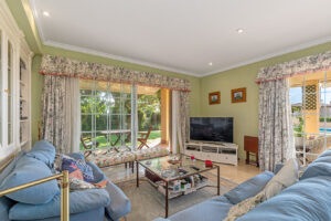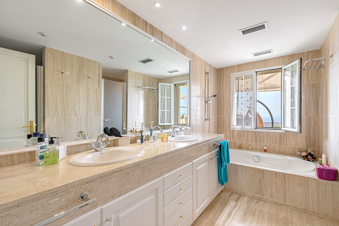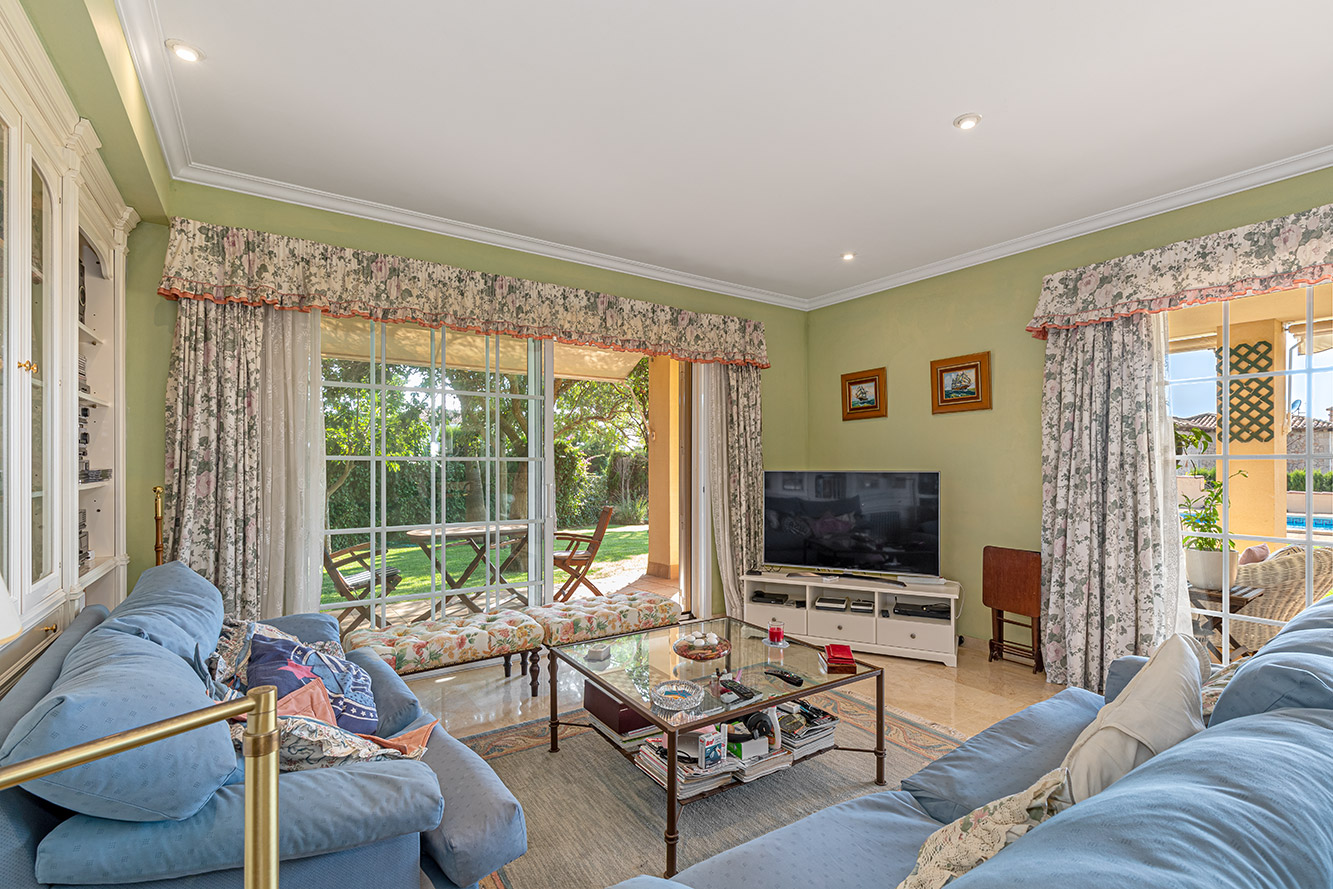 Das Herzstück dieses Anwesens ist zweifellos der großzügige Wohnbereich, der reichlich Platz für gesellige Zusammenkünfte bietet. Der offene Grundriss und die großen Fensterflächen lassen natürliches Licht herein und bieten einen unvergleichlichen Blick auf das tiefblaue Mittelmeer.