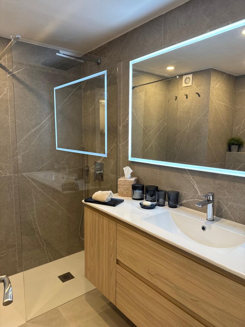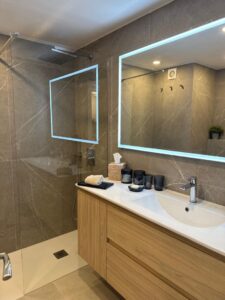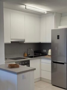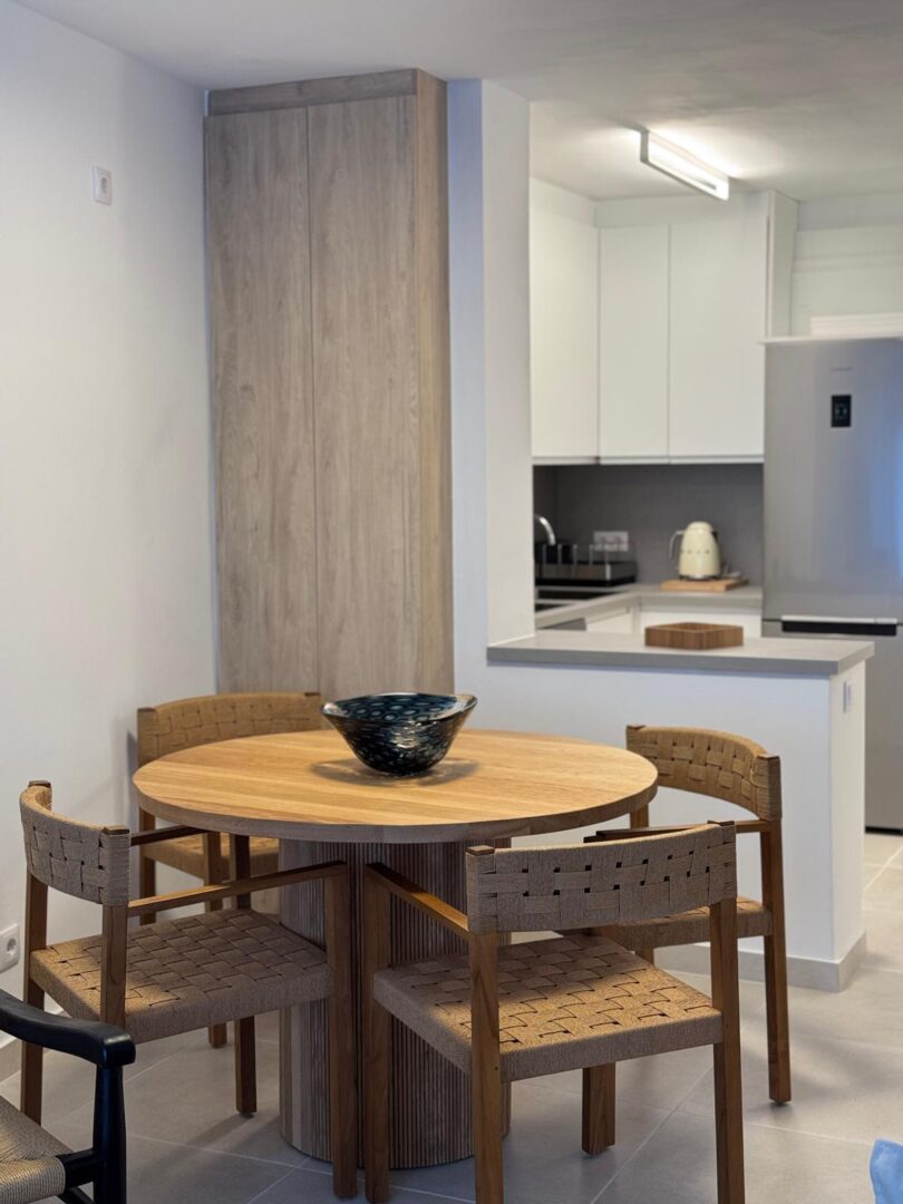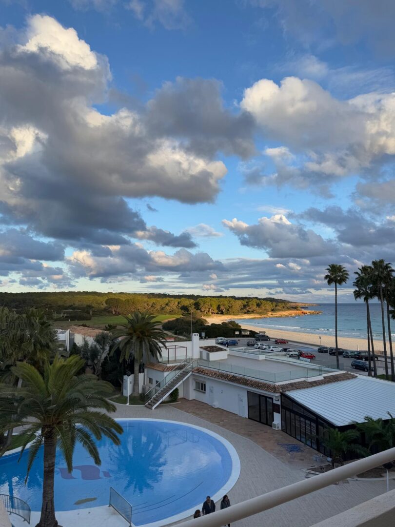 Die Wohnung verfügt über zwei Schlafzimmer und ein Badezimmer, die auf ca. 70 m² Wohnfläche optimal verteilt sind. Sie ist komplett renoviert und mit hochwertigen Materialien ausgestattet. Die Küche wurde mit modernen Geräten von SMEG und Samsung eingerichtet und alle Räume sind stilvoll mit exklusiven Designermöbeln von Unicorn Manacor möbliert. Dank der Lage im dritten Stock mit Aufzug genießen Sie von der privaten Terrasse einen direkten Blick auf das Mittelmeer. Zur Wohnanlage gehören ein gepflegter Gemeinschaftspool sowie ein eigener Parkplatz, die für zusätzlichen Komfort sorgen. Die ruhige und gepflegte Anlage bietet direkten Zugang zur Strandpromenade von Sa Coma und ist ideal als Ferienimmobilie oder auch als Dauerwohnsitz geeignet.